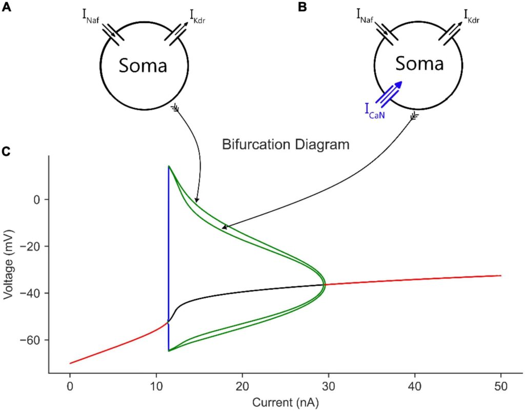 Las bifurcaciones en modelos neuronales explican transiciones críticas en el comportamiento de la neurona, como: