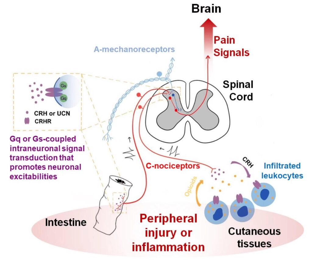 - Inflamación: En cantidades menores, la CRH también es producida por ciertos glóbulos blancos. En estos tejidos, puede estimular la Inflamación, particularmente en el intestino.