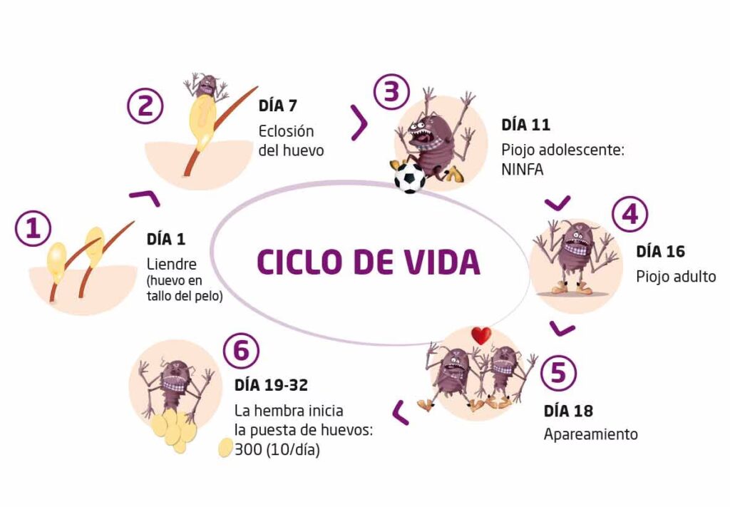 El ciclo de vida de los piojos de la cabeza consta de tres etapas principales: