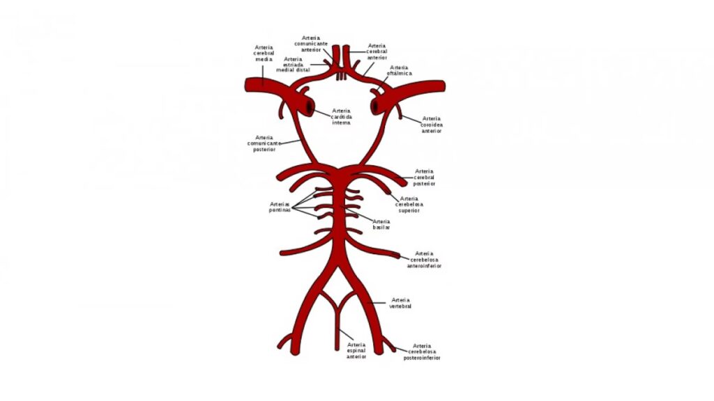 - Sistema vertebrobasilar: Formado por las arterias vertebrales que ascienden por las vértebras cervicales y se unen para formar la arteria basilar.