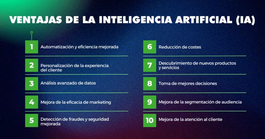 La adopción de la IA ofrece beneficios significativos que están reconfigurando industrias y mejorando la eficiencia. Vistos desde una perspectiva que valora la optimización de procesos y la expansión de capacidades, estos son algunos de los puntos más fuertes: