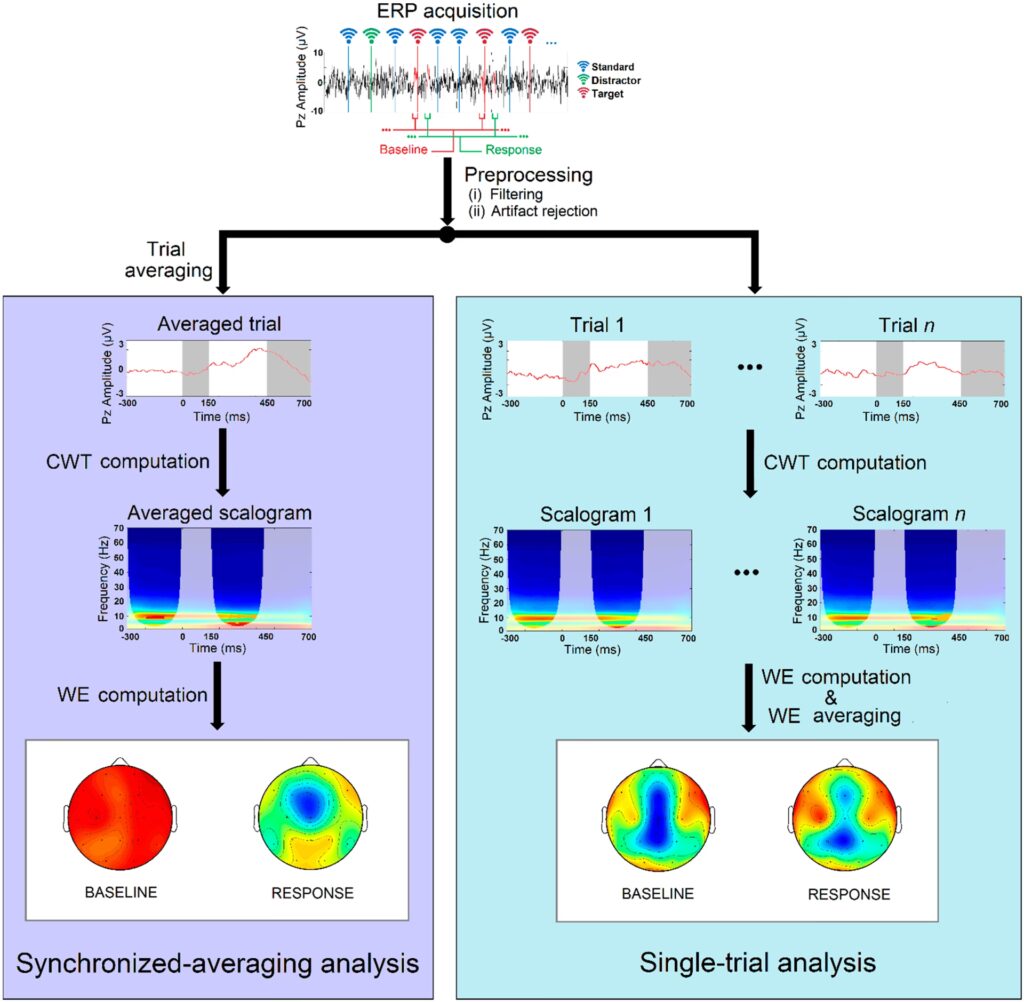 En muchos estudios de cognición, se utiliza un paradigma Oddball para estudiar los efectos de la Novedad y la significancia del estímulo en el procesamiento de la información. Sin embargo, un oddball tiende a ser perceptualmente más novedoso que el estímulo estándar repetido, además de ser más relevante para la tarea en curso, lo que dificulta desenredar los efectos debidos a la novedad perceptual y la significancia del estímulo. Evaluar diferentes componentes de ERP cerebrales puede ayudar a descifrar este efecto. Un componente N2 frontro-central de los ERP se ve afectado principalmente por la novedad perceptual, mientras que solo el componente P3 centro-parietal es modulado tanto por la significancia como por la novedad del estímulo. Esta distinción entre N2 y P3 proporciona una poderosa herramienta para separar estos dos aspectos del procesamiento de estímulos.