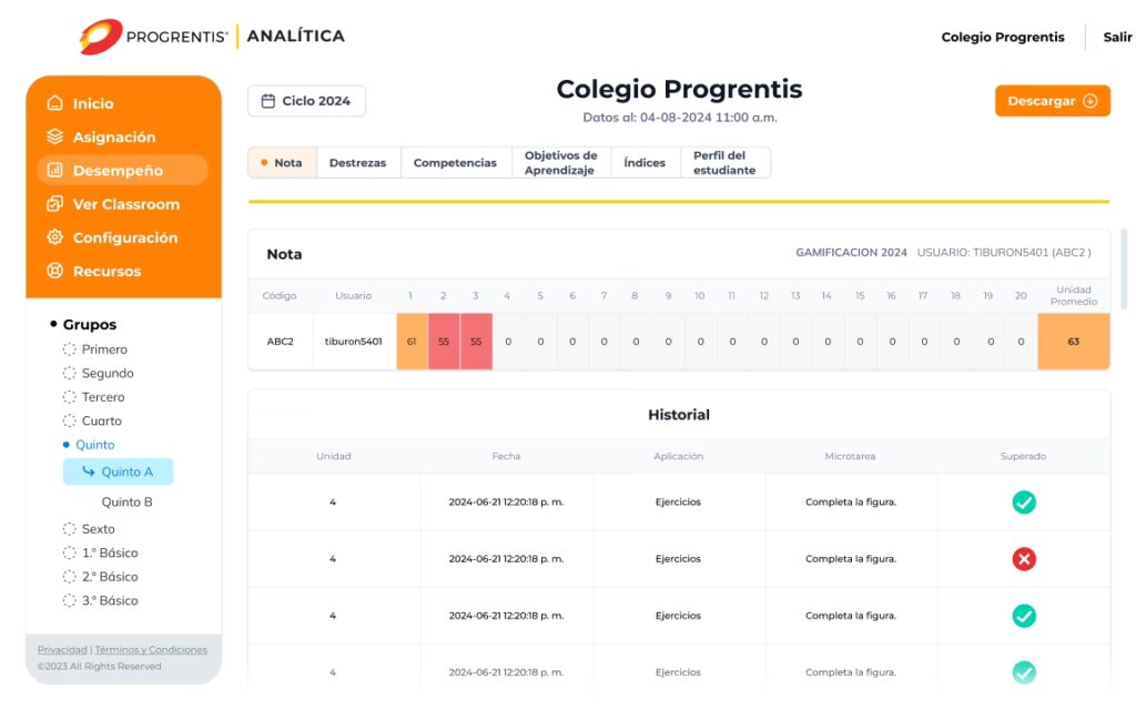 Para que un alumno o su familia puedan acceder al diploma específico una vez que ha sido generado (ya sea de forma automática al finalizar el programa o manualmente por el tutor), Progrentis facilita su consulta a través de la plataforma. Generalmente, este acceso se encuentra en la sección designada para el seguimiento del progreso de los alumnos, a menudo llamada "Avance de Alumnos".